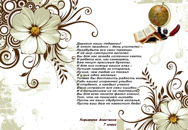 Открытки к дню учителя выполненные воспитанницами 7 класс