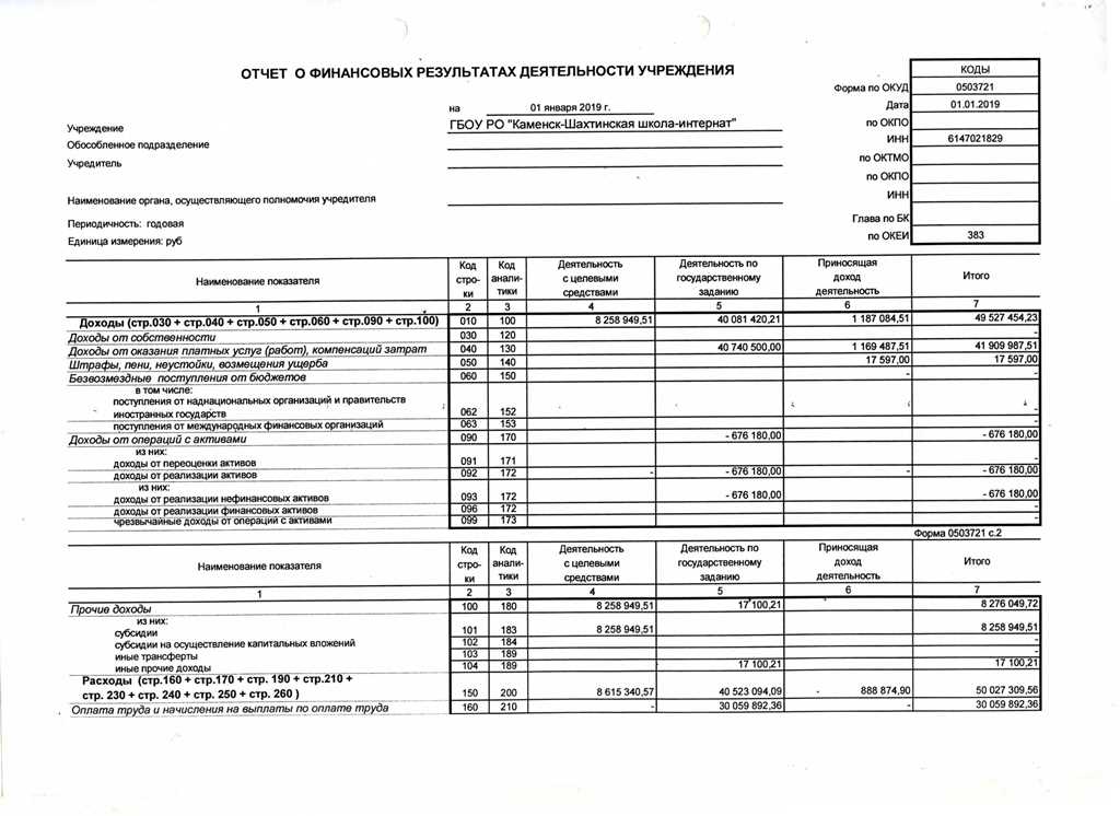 Отчет о финансовых результатах деятельности учреждения за 2019 год